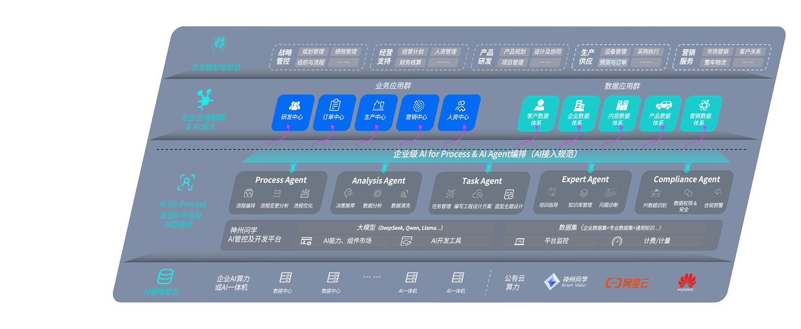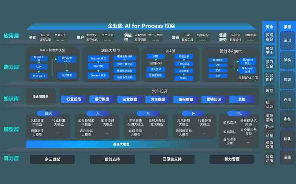 端到端的一站式AI工作空间深度融合了从企业战略规划到日常经营的全流程业务板块,,定向解决车企内部领域多、、部门多、、、链条长、、、、场景碎片化等难题,,,支持车企快速构建以AI为核心的生产力写作体系,,,实现任务执行与AI能力的无缝集成与交互